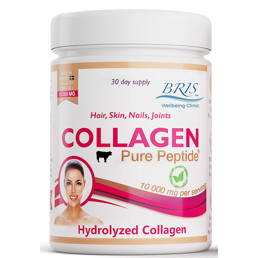 Pure hydrolyzed collagen peptides type 1 &3 (contains the amino acids: L-glycine,L-proline, L-alanine, L-hydroxyproline, L-glutamic acid, L-arginine, L-aspartic acid, L-serine, L-lysine, L-leucine, L-valine, L-threonine, L-phenylalanine, L-isoleucine, L-hydroxylysine, L-methionine, L-histidine, L-tyrosine, L-cysteine). Non-GMO, wheat free, gluten free, soya free, egg free, nut free, milk free.